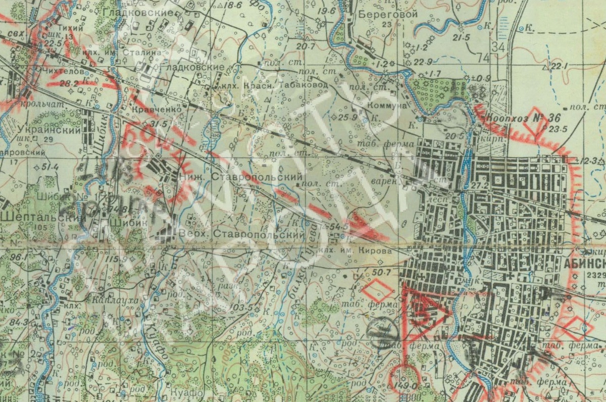 В 17-15 основные силы Передового отряда выдвинулись с западной части Абинская. Продвижению мешали очень сильные атаки с воздуха. Однако в настоящее время Передовой отряд снова начал наступать. Войска по-прежнему атакуются танками с высот. На высоте в 1 ½ км к юго-западу от Абинской все еще находятся сильные позиции (бункеры), занятые русскими. С этой целью Боевая группа Duwensee осталась в тылу, чтобы не допустить атак с этого направления. Командный пункт Передовой группы Bachelin находится в центре станицы в районе речки.
