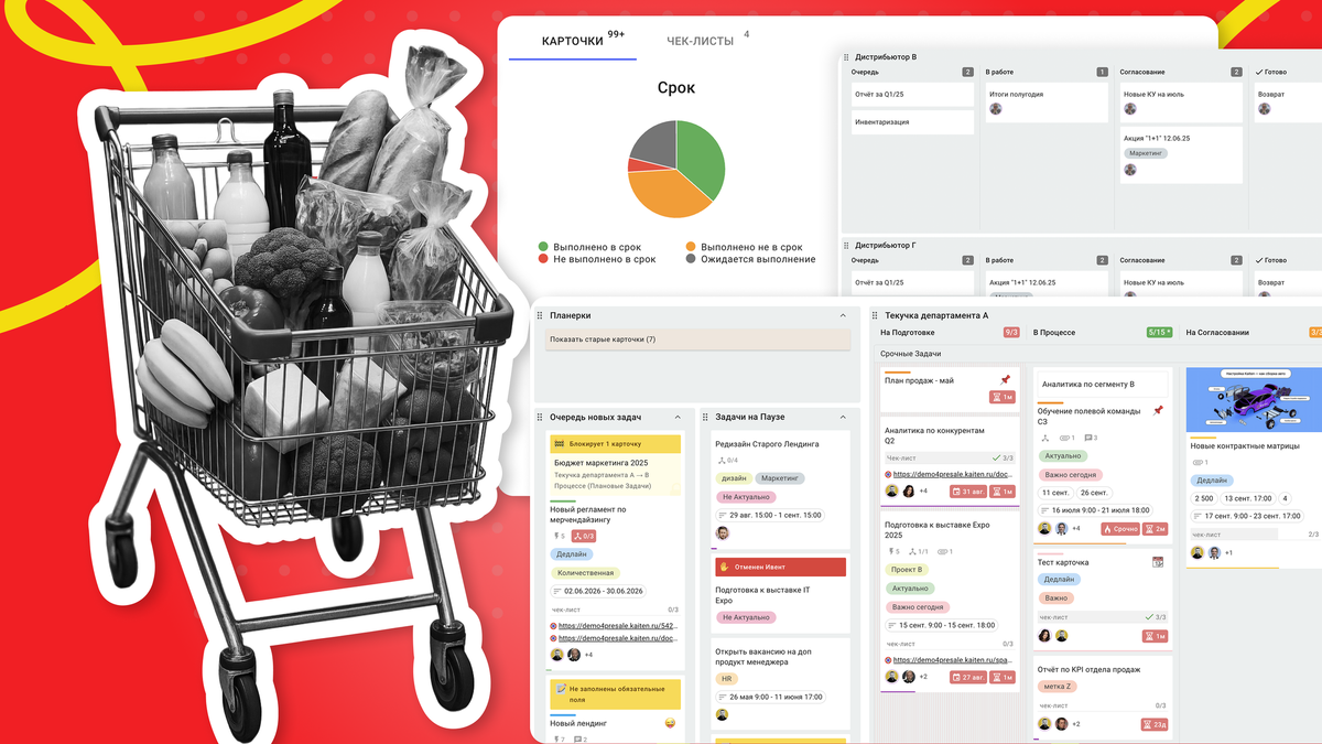 Для этой задачи подойдут специальные системы для управления командами. Одна из них — Kaiten. Рассмотрим, какие возможности Kaiten помогут ритейлу преодолеть ограничения, как их задействовать и как это делают некоторые клиенты сервиса.
