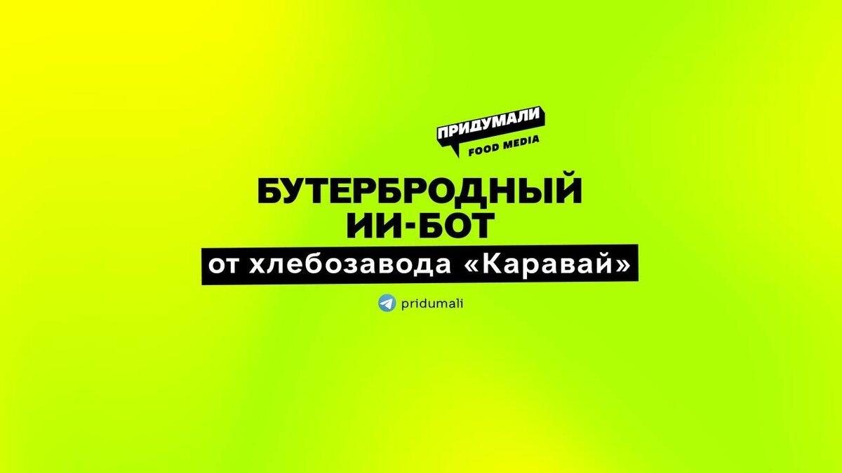 Бутербродный ИИ-бот прямо в Телеграм Хлебозавод КАРАВАЙ придумали бот, который мгновенно подбирает рецепты бутербродов под твоё настроение. Да-да, именно под настроение. Логичнее была бы история про ингредиенты, которые, например, есть дома в наличии. И рецепт бот выдаёт строго по граммам, а не в ломтиках/штуках/ложках/на глазок, как обычно на домашней кухне. Сомнительно, но поиграться один раз можно. 👉подписаться на @pridumali #foodмаркетинг