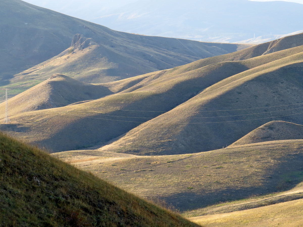 Пора подниматься на Джан-Кутаран. Все-таки сказочная страна, наша Киммерия! Каждый раз зависаешь всматриваясь в эти плавные линии склонов. В этот бархат золотых трав, очерчивающий их, словно стежками вышивки гладью. А груды валунов и глыбы голых скал В размытых впадинах загадочны и хмуры. В крылатых сумерках – намеки и фигуры… Вот лапа тяжкая, вот челюсти оскал, Вот холм сомнительный, подобный вздутым ребрам. Чей согнутый хребет порос, как шерстью, чобром? Кто этих мест жилец: чудовище? Титан? (М. Волошин) А это глаза того самого чудовища)) Так, медленно, оглядываясь на волшебство за спиной, мы поднялись над 5-м мысом. Подозрительно низкое солнце пыталось прятаться за тучи, лишь немного оставляя на поверхности моря яркие пятна. Туманный день раскрыл златое око, И бледный луч, расплесканный волной, Скользит, дробясь над мутной глубиной… (М. Волошин) В течении всей прогулки пейзажи сменяются друг за другом, как в калейдоскопе картинки. Не успеешь насмотреться одним видом, как уже откр