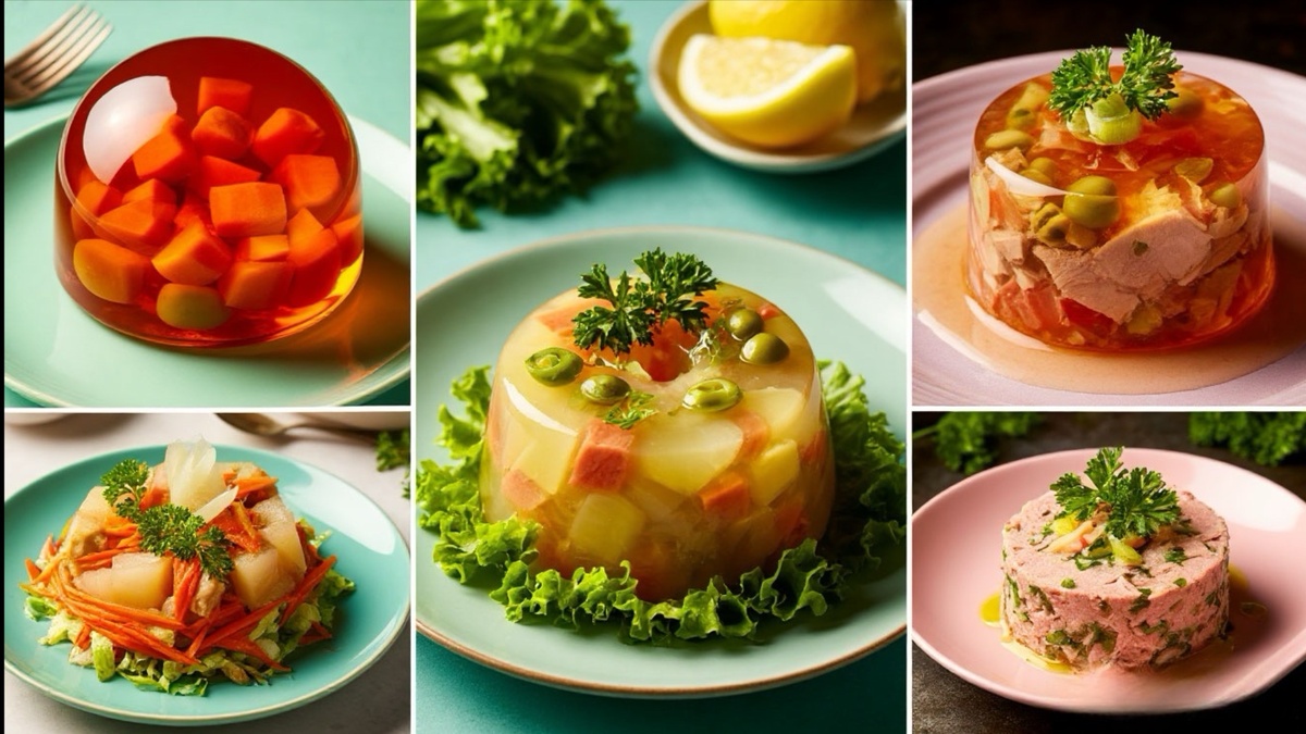 Тунец, оливки, сельдерей — всё это зафиксировано в лаймовой желатиновой смеси. Звучит как вызов, но соль тунца и горечь оливок балансят сладкую кислоту лайма. Секрет успеха — очень холодная подача и тонкий слой майонезной заправки с горчицей. Для современного вкуса замените часть воды в желе огуречным рассолом — получится «адульт-версия».