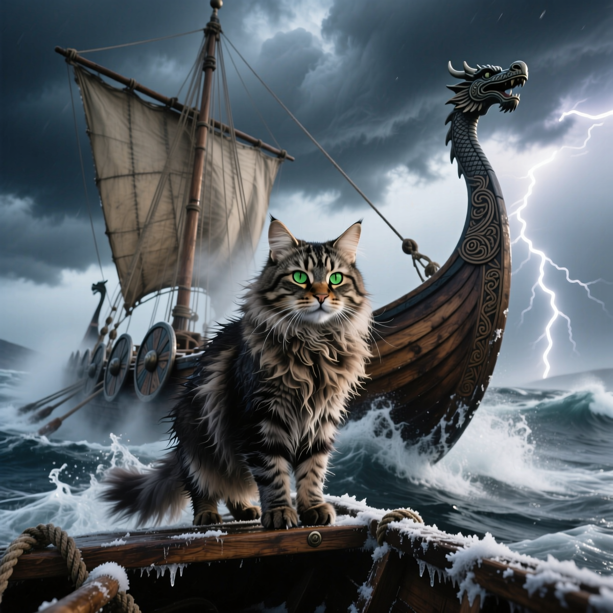 Когда мы представляем драккар, в голове возникают образы свирепых воинов в рогатых шлемах. Но на этих же кораблях были и другие, куда более мелкие, но не менее важные пассажиры — кошки. Они были не просто случайными попутчиками, а стратегическим ресурсом, подчинявшимся своему суровому «коду викингов». Длинные морские походы означали запасы провизии, которые нужно было любой ценой защитить от крыс и мышей. Кошка была живым, самообновляющимся и высокоэффективным оружием против порчи припасов. Один кот-крысолов был ценным членом экипажа, залогом выживания в открытом море. Суровый климат Северной Атлантики был главным врагом викинга. И здесь кошка раскрывала свой второй талант. Благодаря высокой температуре тела и густому меху, она была идеальной «живой грелкой». Воины брали их в спальные мешки, чтобы согреться в леденящие ночи, а для лап шили специальные кожаные рукавицы, чтобы чувствительные подушечки не мерзли на холодном палубе. Глава 3. Шепот Фрейи: хвост-предсказатель Викинги были на