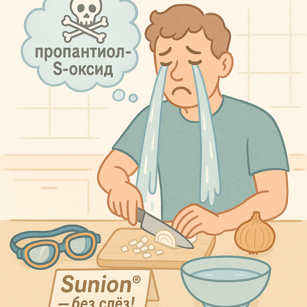Представьте: вы спокойно готовите ужин, режете луковицу — и вдруг ваши глаза предательски щиплет, а по щекам катятся слёзы. При этом вы не расстроены и не смотрите "Хатико". Вы просто стали жертвой одного из самых изящных актов химической обороны в растительном мире. Лук — не безобидный овощ. Это тихий стратег, который миллионы лет оттачивал своё главное оружие: способность заставить любого, кто посмеет его разрезать, заплакать. И за этим «слезливым» эффектом стоит не магия, а точная биохимическая реакция — быстрая, эффективная и невероятно умная. Вот как это работает. В клетках лука хранятся серосодержащие соединения и особый фермент — аллииназа. Пока лук цел, они разделены, как порох и запал. Но стоит вам повредить клетки ножом — и они смешиваются. Запускается цепная реакция: фермент превращает соединения в пропантиол-S-оксид — летучий газ, который моментально поднимается вверх. Он достигает ваших глаз — и вступает в реакцию с водой на поверхности роговицы, образу