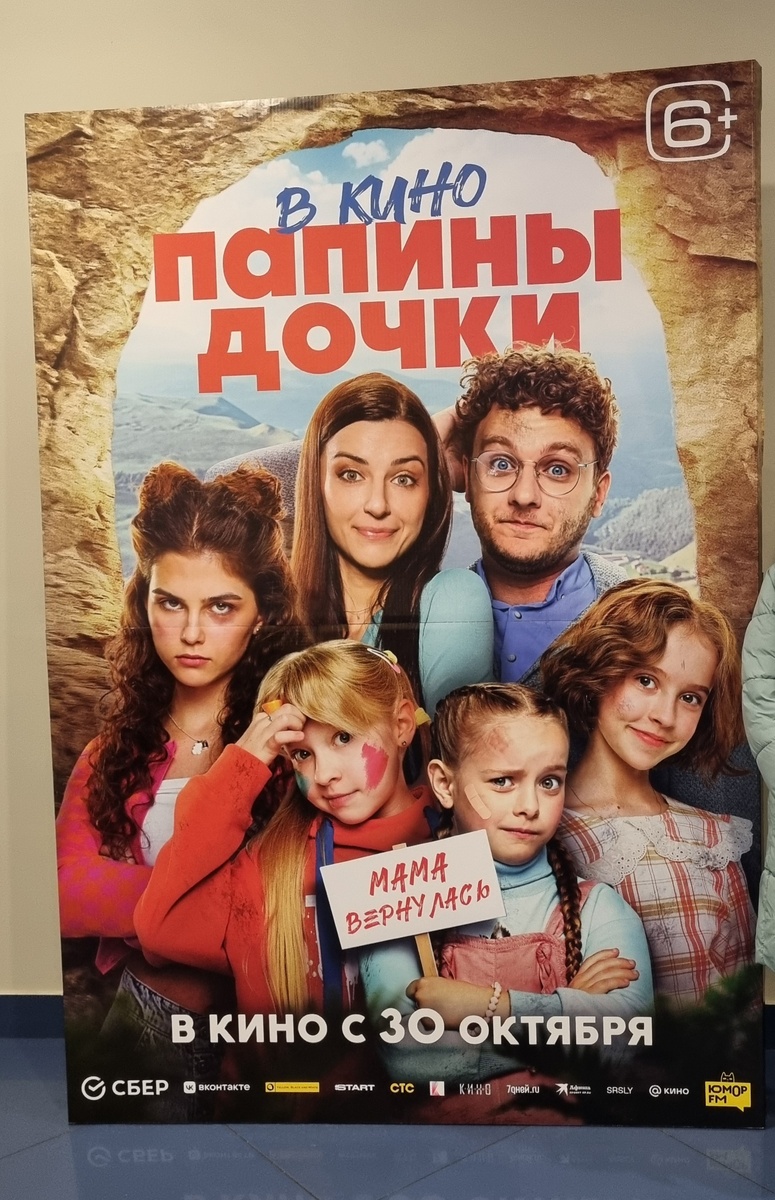 Всем доброго-доброго! У нас вчера был поход в кино с дочкой - такие вот киноканикулы получились)) Смотрели "Папины дочки. Мама вернулась". Когда показывали последний трейлер перед фильмом, в зале сработала пожарная тревога)) Мы цивилизованно прошли к выходу, нас сотрудница проводила, и вот уже мы на лестнице, и нам в спину кричат "Назад! Учебная". Лина заволновалась, я думала о том, как поменять билеты, но в итоге мы вернулись в зал и начали просмотр))) Ну что ж. Кино обещает быть добрым и с юмором. Повествование начинает младшая из сестёр - Арина. И ее история про деда Мороза вносит сказочности в происходящее, к этому волшебнику возврашаются по ходу фильма. Опять же так-то и Новый год скоро)) Я не буду рассказывать все события фильма, чтобы остался интерес сходить и посмотреть) События развернулись в Кисловодске на свадьбе Маши. Романтика витает в воздухе и атмосфера для примирения идеальна) Но от взаимных претензий между Дашей и Веником скорее молнии летают)) Девчонки берутся их мири