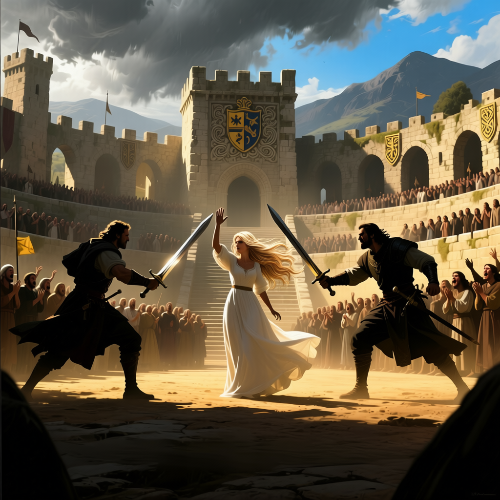 Эллен стояла в толпе служанок, закутавшись в простой плащ. Ее лицо было бледным, но слез не было. Она прошла через слишком много, чтобы позволить страху парализовать себя. Ночью она приняла решение. Если Аларик будет проигрывать, она вмешается. Последствия ее не волновали. Она не могла потерять его.