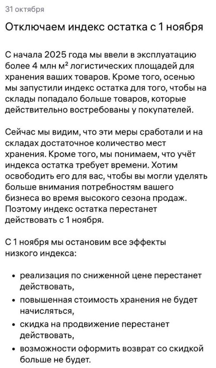 😂😎😂🥺пряник прилетел 😆 WB отключает индекс остатка🔥 Читаю новость между строк и вижу: Мы решили отложить индекс остатка, потому что вы на нас пожаловались. Чуть позже мы сделаем новую фичу, которая поможет нам обойти все претензии, но по факту будет тоже самое.😂
