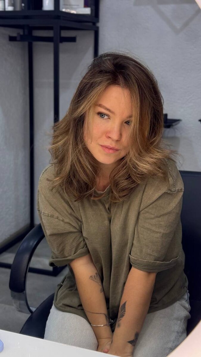 Смотрите какой классный переход цвета у нас получился. Задача была сделать цвет светлее, но без тотального осветления. Важно было, чтобы визуально не бросались в глаза отросшие седые корни. Вот с таким окрашиванием мы решили все задачи и всё сложилось в такую прекрасную картинку❤️ Подружка сёрфера снова в деле, получается)