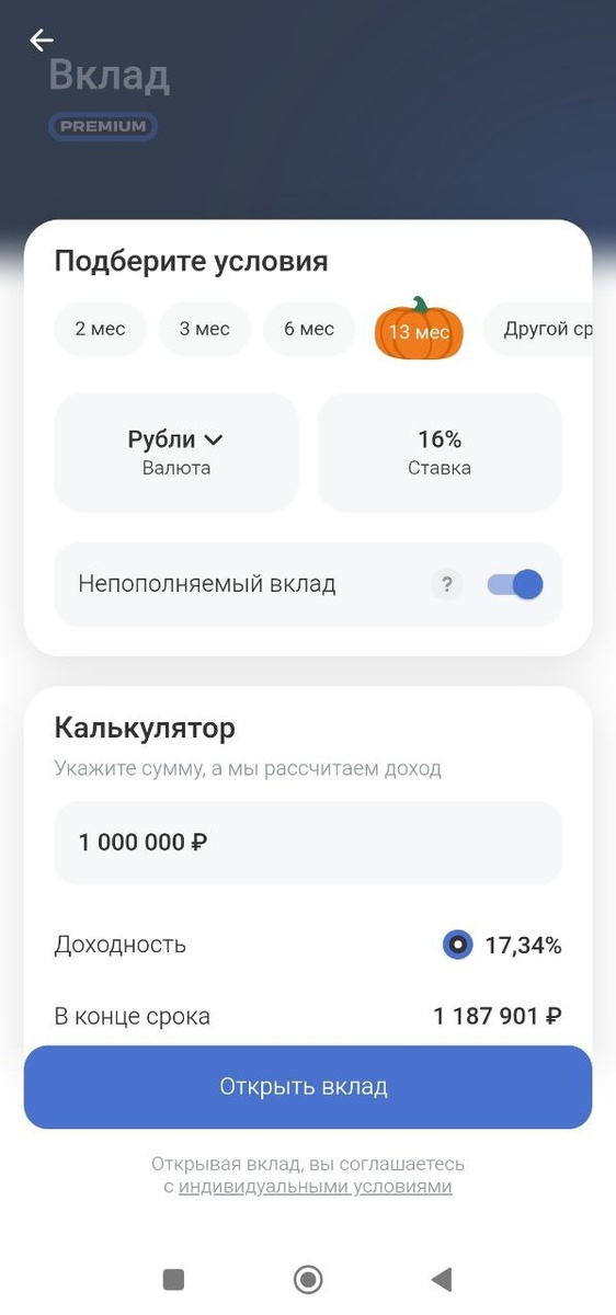 Остаётся совсем немного времени для открытия вклада в Т-Банке. 🏅 Инструмент - консервативный, но! Есть возможность пополнения ещё 30 дней (Вдруг у кого то допустим деньги освобождаются в ближайшее время) А минимальная сумма для открытия сегодня 50 000 рублей. Вроде, относительно не большая сумма. Короче, на мой взгляд, инструмент стоит внимания риск/доходность - хороши! 😀 Я себе открыл пока на 50 000 т.р.