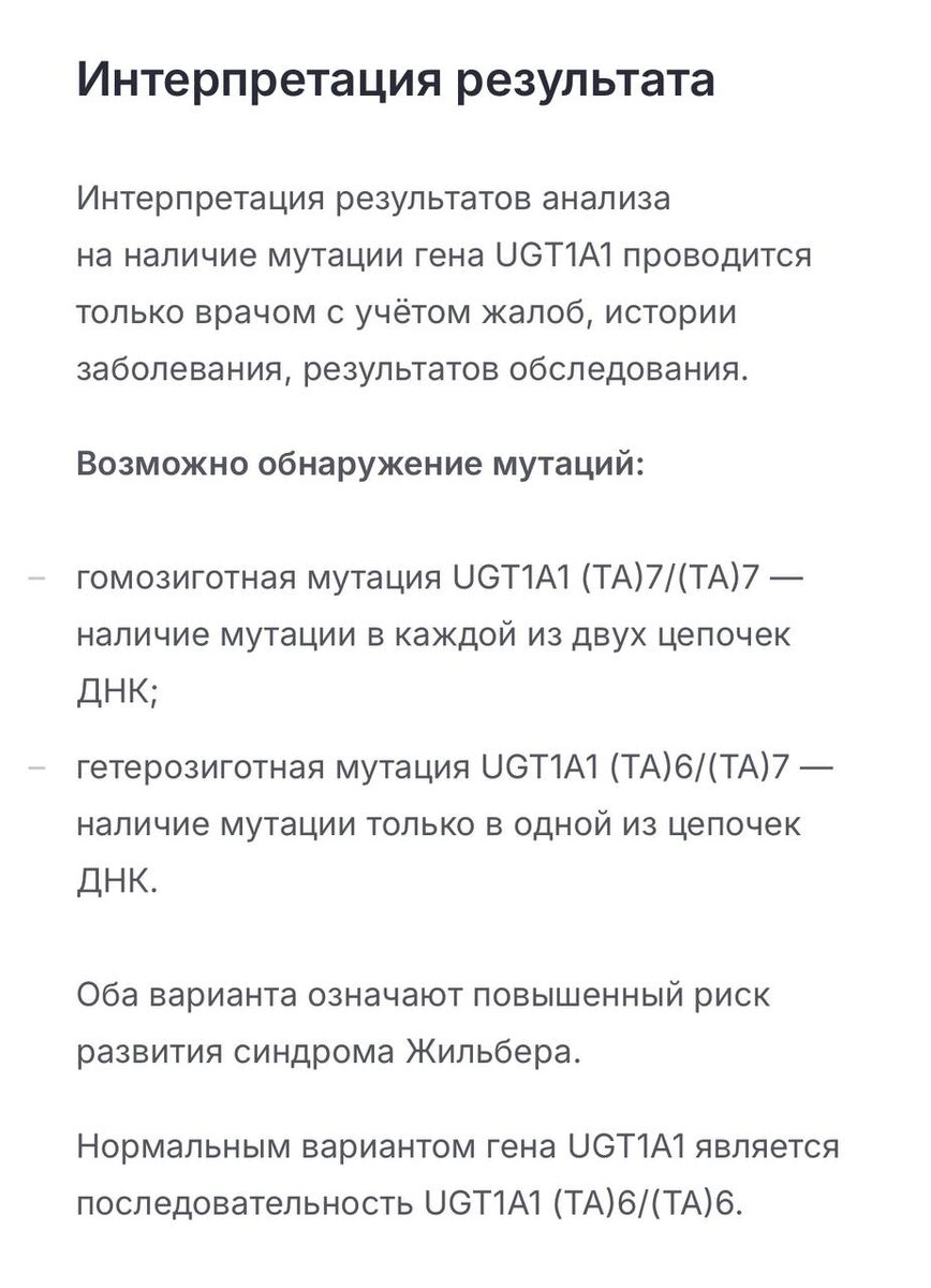 ВОПРОС ❓А если синдром Жильбера 6/7? Мне генетик, сказал, поздравляю у вас нет этого синдрома! Но в интернете другая информация) ОТВЕТ ➡️Это означает у Вас один ген здоровый, а в другом мутация. Часто такое состояние в интернете могут назвать легкой формой с-ма Жильбера. Но фактически, Вы носитель дефектного гена. #синдромжильбера