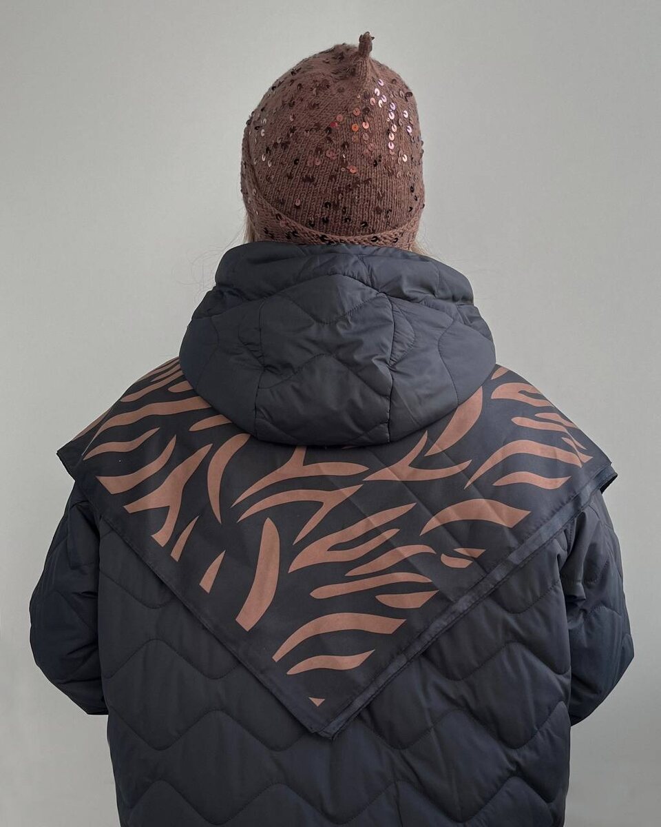 Коричневая пипка с пайетками Размер: обхват головы 55-56 см Пряжа: Drops Baby Merino 52 1 моток, Королевские пайетки Leisan wool 29 1 конус Спицы: №3,5 Плотность: 20 петель x 32 ряда = 10 x 10 см Набрать 95 петель. 4 ряда платочной вязкой. Лицевая гладь 18 см. Разделить на 5 частей по 19 петель, поставить маркеры. Провязывать 2 петли вместе лицевой наклон вправо перед каждым маркером. Убавки делать 2 ряда с убавками, 1 без, 2 ряда с убавками, 1 без. Пока не останется 5 петель на спицах. Продолжить вязать пипку вверх 2 см. Стянуть петли иглой.