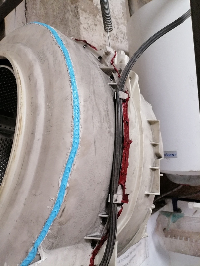 К нам в мастерскую сегодня попал бак стиральной машины индезит. Дважды восстановленный в нашей же мастерской. Один раз делал другой сотрудник 5 лет назад, когда ещё не был разработан метод пайки неразборных баков. И работали мы тогда ещё по такой схеме. Бак разрезался болгаркой по заводскому шву. Затем зачищался, обезжиривался заливался герметиком и с помощью саморезов стягивался. У такого метода много минусов. Начиная с того что так можно повредить камеру уровня воды, ждать 24 часа, подобрать хороший герметик и заканчивая тем что перетянув двигатель пришла бы звезда и шов бы разошёлся где потекло бы всё прямо на двигатель Фото той самой камеры. А сейчас он попаь в мои руки с красивым елочным швом. С моим приходом в мастерскую я ввёл пайку баков. Такой елочкой это выглядит сейчас. Тоже было много неудач, тут больше вопросов к подбору аппарата для пайки, и прутка. В ход шёл фен промышленный переделанный мной с помощью сварки в аппарат для пайки пластика, минус сгорала обмотка. Долгая ис