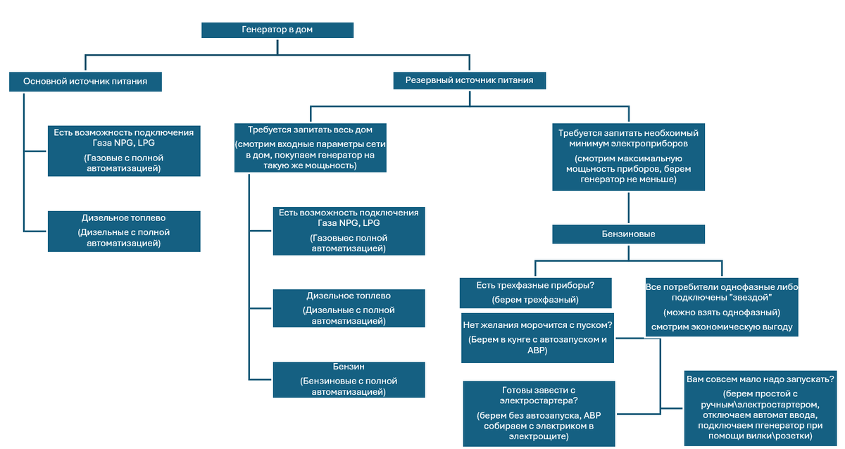 - Критерии выбора генератора