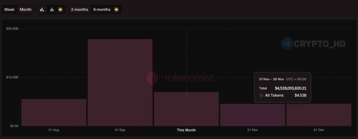 #анлок 🔒 В ноябре разблокируют альткоины на $4,500,000,000+ – Tokenomist Crypto Headlines