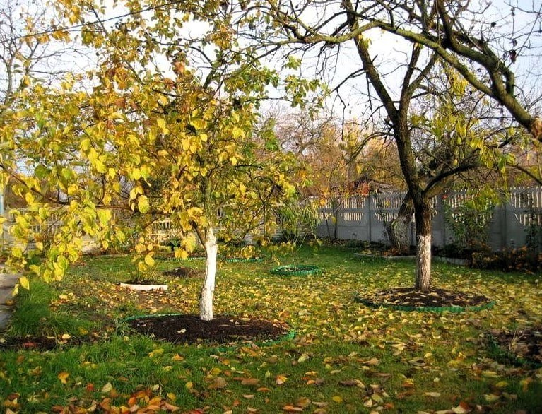 Какие работы выполнить на даче в ноябре: Сбор урожая: Завершить сбор поздних овощей (капусты, моркови, свеклы, лука порея и др.) и фруктов (яблок и груш зимних сортов) перед наступлением устойчивых холодов. Обрезка деревьев и кустарников и подготовка к зиме: - провести санитарную обрезку поврежденных ветвей (сломанных, надломленных, поражённых болезнями). - побелить стволы и скелетные ветви деревьев известковым раствором. Это защищает кору от солнечных ожогов ранней весной. - замульчировать приствольные круги торфом, компостом или перегноем слоем 10–15 см. - укрыть теплолюбивые культуры (ежевика, виноград, розы, клематисы) мульчей, лапником или агроволокном для защиты от морозов. - обвязать молодые саженцы нетканым материалом или специальной сеткой от грызунов. Подготовка огорода: - убрать растительные остатки с грядок: ботву, корнеплоды и сорняки. - перекопать почву на полный штык лопаты. - внести фосфорно-калийные удобрения под перекопку, так как фосфор и калий медленно растворяю