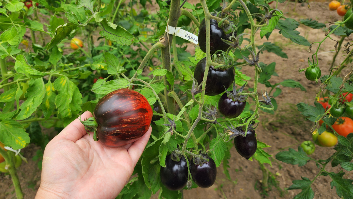 Всем привет, дорогие друзья.Сегодня я хочу рассказать вам об одном томате, который не просто порадовал восхитительным вкусом, а стал главным украшением моей теплицы в этом сезоне. Знакомьтесь — томат «Гаргамель». И да, это именно тот случай, когда помидор можно смело назвать драгоценностью. Я уже летом упоминала его, сравнивая с другим сортом с фиолетовыми плодами, но он заслуживает отдельного детального разбора. Почему? Сейчас всё расскажу. 1. Внешность, от которой глаз не оторвать. Это не просто фиолетовый помидор. Это настоящий хамелеон! 2. Вкус, который обманывает ожидания. Готовьтесь к сенсации: это один из самых сладких и нежных томатов, что я пробовала. Кислинки почти нет, зато есть явные фруктовые нотки и насыщенный томатный аромат. Мякоть плотная, сахаристая на изломе. А вся эта магия и польза — от высокого содержания антоцианов, тех самых антиоксидантов, что отвечают за его королевский окрас. 3. Урожайность, которая поражает воображение. Это не преувеличение. С одного хо