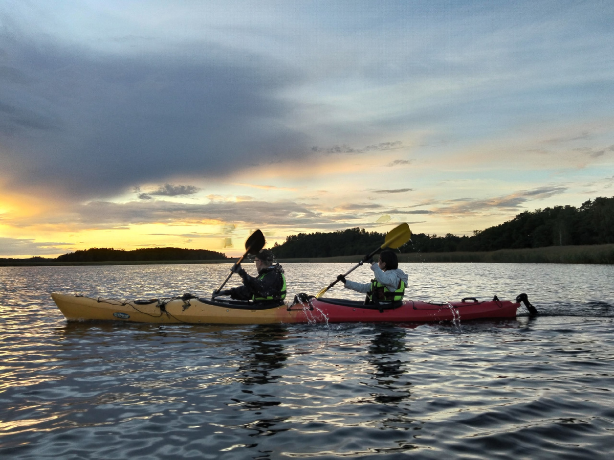 Благодаря нашим инструкторам Игорю и Александре научились управлять каяками на разной воде, даже посреди камышей попробовали свои силы (это как попасть в лабиринт и потом долго искать выход, а на выходе радостно кричали "Свобода!" — спасибо Игорю за эти впечатления!) Все насладились красивейшими закатами, пок
