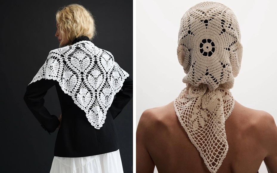 Slavic core снова в списке трендов. Но если в прошлом сезоне это было повальное увлечение мехом, то в 2025 – кружевом. Воротнички, будто связанные крючком, манжеты, шали и косынки в стиле ретро – самые модные аксессуары прямо сейчас.