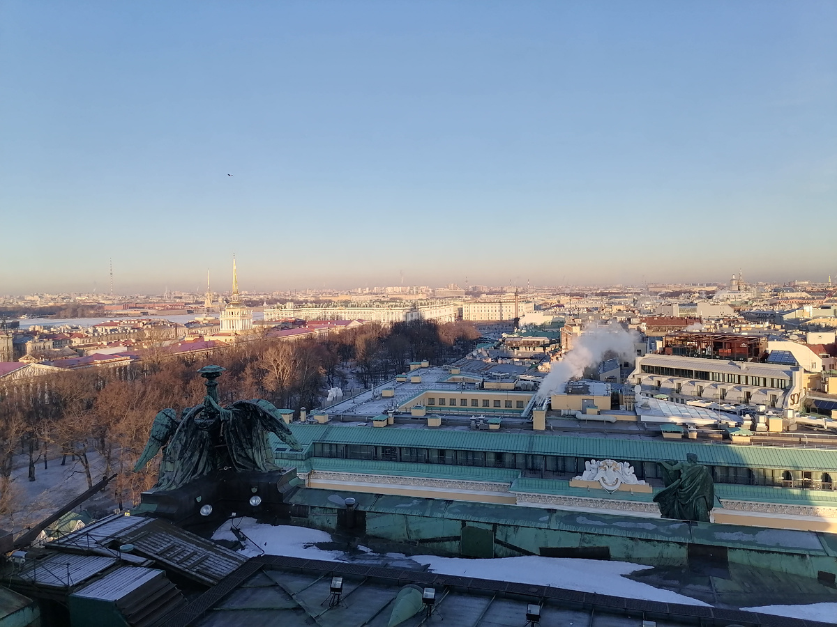 Одна из популярных смотровых площадок расположена на колоннаде Исаакиевского собора. Виды открываются интересные во все стороны света, есть аудиогид с информацией о достопримечательностях. Обычно много посетителей в сезон.