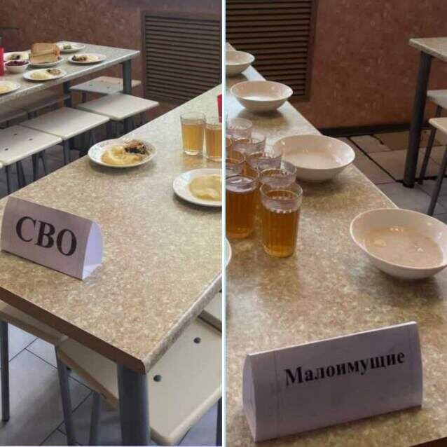 Как оказалось, детям из малообеспеченных семей подавали только бульон, а участникам СВО — пюре с мясом, обратили внимание пользователи соцсетей в комментариях под фотографиями.