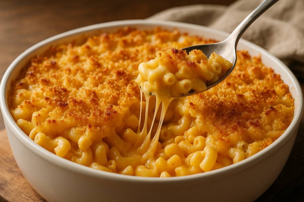 Папа сегодня снова на кухне. «Будет сыр, много сыра». Дети уже хлопают в ладоши — значит, сегодня будет мак-н-чиз. Но, есть один момент: не всегда это блюдо получается как на картинке. Иногда вместо шелковистой массы выходит что-то вроде клейстера, где ложка стоит вертикально. Почему так? Всё просто: не те сыры, не то тесто, не то настроение. Мы проверили десятки рецептов и теперь точно знаем: два сыра и одна крошка — вот что делает мак-н-чиз идеальным. Не верьте, если говорят: «Доваривайте, духовка сушит, недоделает макароны». Нет, не высушит, а просто превратит в кашу. Поэтому пасту (лучше короткую: макароны, ракушки, рожки) варим на минуту меньше, чем указано на упаковке. Она должна быть чуть упругой, потому что ещё проведёт время в соусе и духовке. «Мак-н-чиз — это не про макароны с сыром, это про баланс: немного пружинит, немного тянется». Бешамель — это основа всей нежности. 1. В сотейнике растапливаем 2 ст. ложки сливочного масла. 2. Добавляем 2 ст. ложки муки, быстро размешива