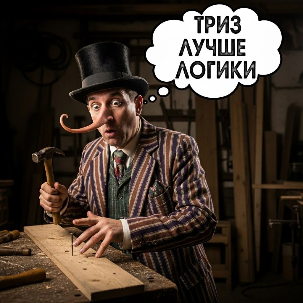 ТРИЗ эффективнее логики? В интеллектуальных спорах вокруг ТРИЗ есть один завораживающий спектакль, который точнее всего раскрывает её внутреннее противоречие. Это момент, когда убеждённый последователь этой ложной «теории», желая доказать её превосходство, невольно показывает вторичность теории решения изобретательских задач. Представьте картину: «эксперт по ТРИЗ» предлагает изящное решение сложной инженерной или бизнес-задачи. Он провёл вас по лабиринтам «противоречий», «веполей» и «идеального конечного результата», использовал один из «сорока приёмов» и с гордостью представляет итог. И вот здесь начинается самое интересное. Чтобы доказать вам, что найденное решение действительно превосходит другие возможные варианты, он внезапно отбрасывает свой уникальный «тризовский» словарь, то есть перестаёт говорить о «ресурсах» и «законах развития систем» и переходит на универсальный язык разума: прибегает к строгой, всем понятной формальной логике. Этот «эксперт» выстраивает причинно-следс