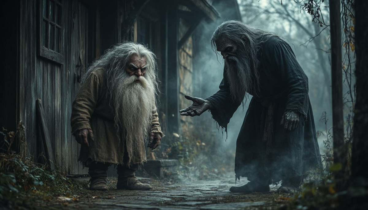— Хозяин… милый человек… впусти… Заблудился старик, ноги отнялись… Обогреться бы малость, у печки твоей… Смерть моя близко…