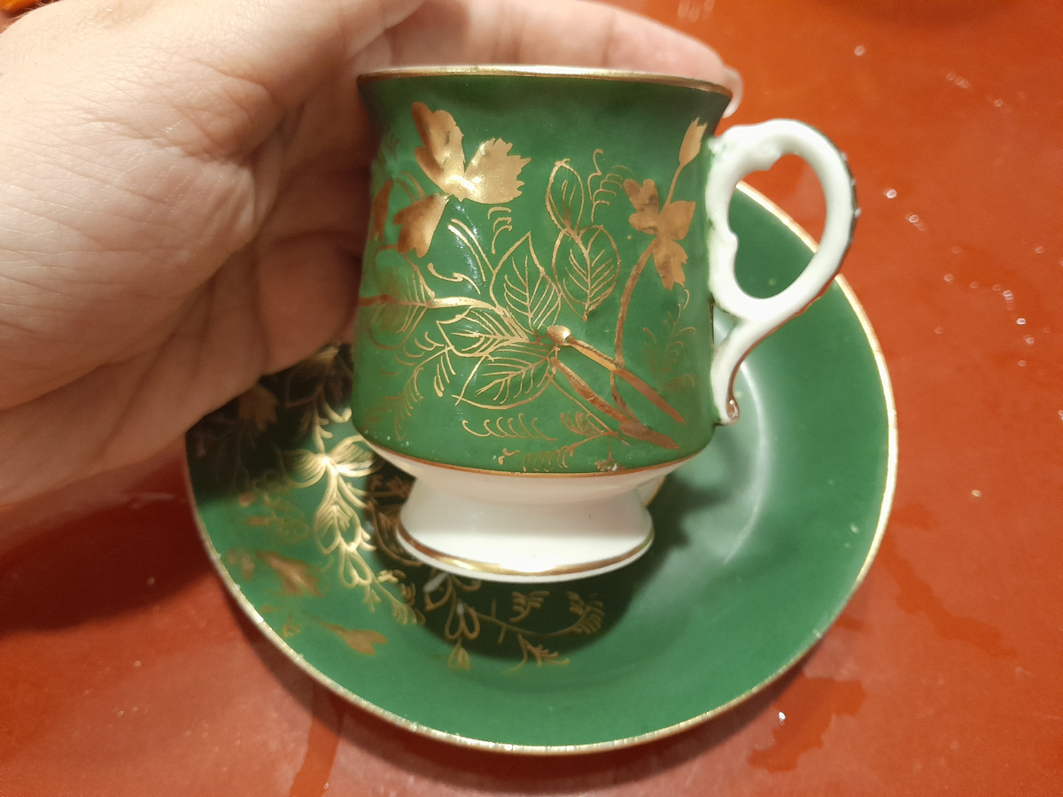 Не могу вам не показать одну пару, а также покажу последнее из того, что ещё не показала. Пара эта - Кузнецов, стык веков. Покажу несколько фотографий, чтобы вы ну, во-первых, конечно, полюбовались, во-вторых, увидели, в каком потрясающем она состоянии. Сохранность просто отличная. Самую малость потерта позолота. На клейме "Д Ф", по всей видимости, это означает "Дмитровский фарфор". В любом случае пара произведена в Вербилках. 1891-1917 годы. Мы посчитали с подписчицами, паре от 109 до 134 лет! Дальше покажу менее старые, но тоже интересные части сервиза. Пролетарий. 1958-1967 годы. Но форма старая, она-то мне и приглянулась, когда я этот сервиз увидела. Смотрите, какие ручки! И сохранность отличная тоже. Самый интересный и редкий предмет тут, конечно, капельник. Ну а дальше покажу ещё немного посуды. То, что разбирали в последние дни и что не вошло ни в одну статью. Снова Пролетарий, но чуть более современный (клеймо кораблик). Чайные пары Берёзка (Дулево), ушли по 800. Ч