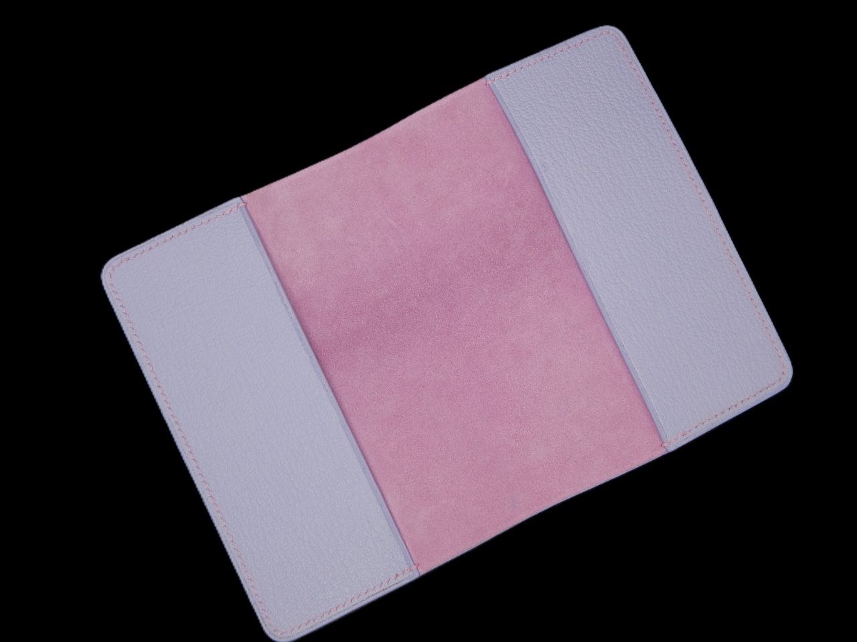 Обложка для документа - что может быть проще? Но не сегодня : в основе кожа козы в лавандовом оттенке, мягкая замшевая подкладка нежно-розового цвета и льняная нить в тон создают неповторимую гармонию. Особое внимание уделено колеровке краски на торцах — именно такие детали делают аксессуар уникальным.