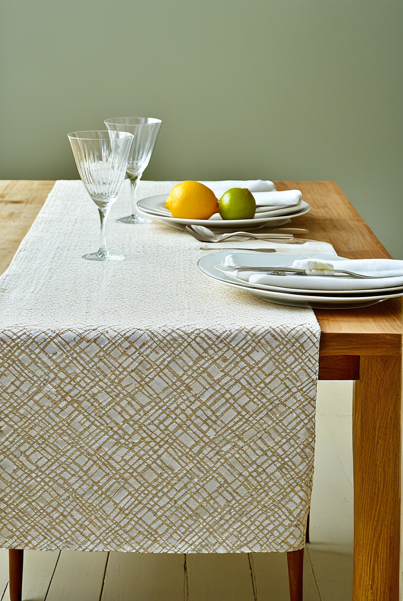 Выбор скатерти начинается с материала. Для повседневного использования практичны ткани, например 100% натуральный хлопок. Для праздничного застолья или торжества предпочтите плотный, тяжелый лен. Чем плотнее ткань, тем ровнее она лежит, предотвращая скольжение декора. Приятный на ощупь и устойчив к загрязнениям.