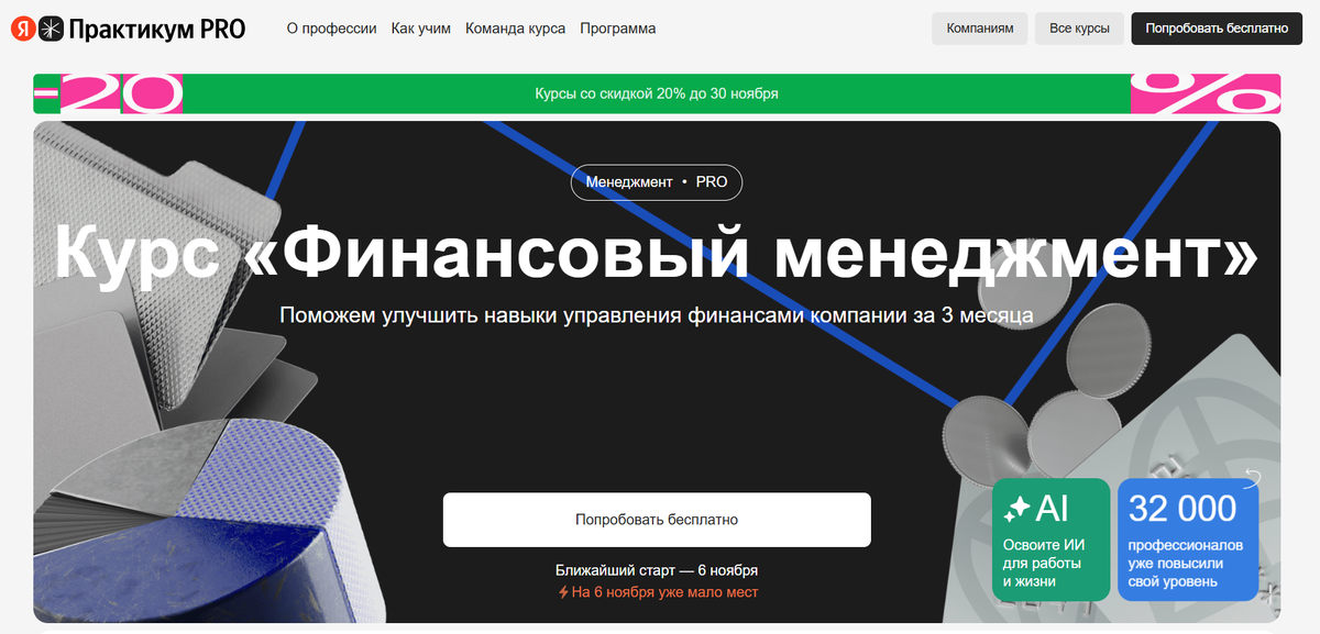 Мы провели анализ всех курсов финансового директора в России и выбрали 30 лучших программ, которые готовят специалистов к управлению финансами, бюджетированию и стратегическому развитию компании. Эти курсы подходят руководителям, бухгалтерам, аналитикам и предпринимателям, желающим системно управлять деньгами бизнеса и принимать решения на уровне CFO.