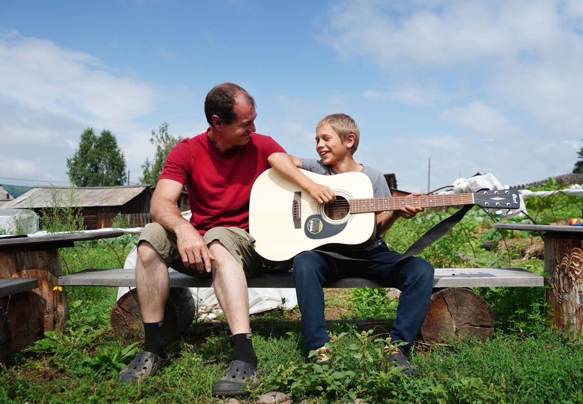 Когда то только для фото взял в руки гитару... А как теперь играет... Красавчик сынишка.