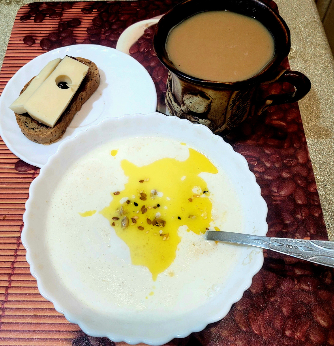- Завтрак Каша -отрубяша с 1ч л льняного масла и 1 ч л смеси семян