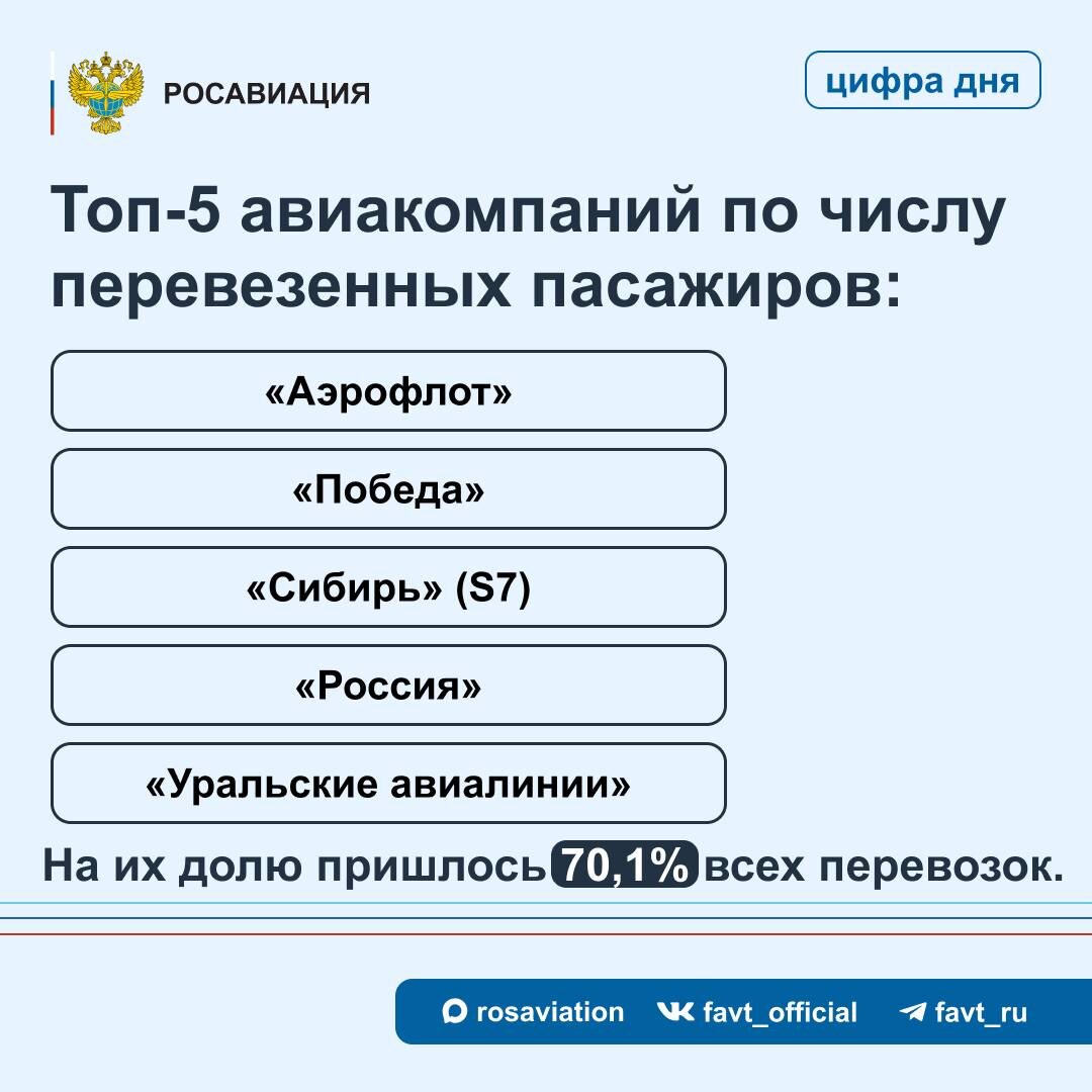 Пассажиропоток российских авиакомпаний пошел на снижение. Согласно данным Росавиации, совокупный объем перевозок за 9 месяцев сократился на 2,5%, составив около 84 млн человек против 86,1 млн за этот же период 2024-го. Наиболее существенное падение продемонстрировали внутренние маршруты, где число пассажиров уменьшилось на 3,8%, достигнув отметки в 63,3 млн. В то же время международных продолжается рост, хоть и незначительный – плюс 0,7%, что соответствует 20,4 млн пассажиров. Структура рынка сохранила стабильность: пятерка лидеров по пассажиропотоку за год не изменилась. Возглавляет рейтинг «Аэрофлот», следом за ним располагается лоукостер «Победа», на третьей позиции – авиакомпания S7. Замыкают список перевозчики «Россия» и «Уральские авиалинии». На их совокупную долю пришлось 70,1% от всех выполненных перевозок в стране. Подробнее на ТурДоме. @tourdom