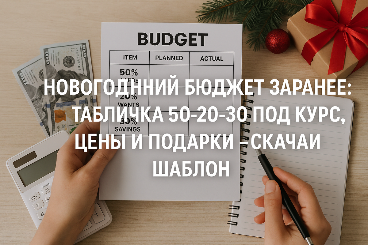 Новогодний бюджет заранее: табличка 50-20-30 под курс, цены и подарки — скачай шаблон