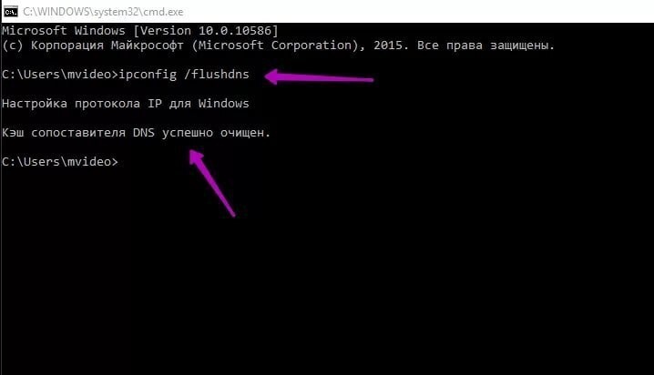 4️⃣ Нажмите Enter — появится сообщение: *Кэш сопоставителя DNS успешно очищен*