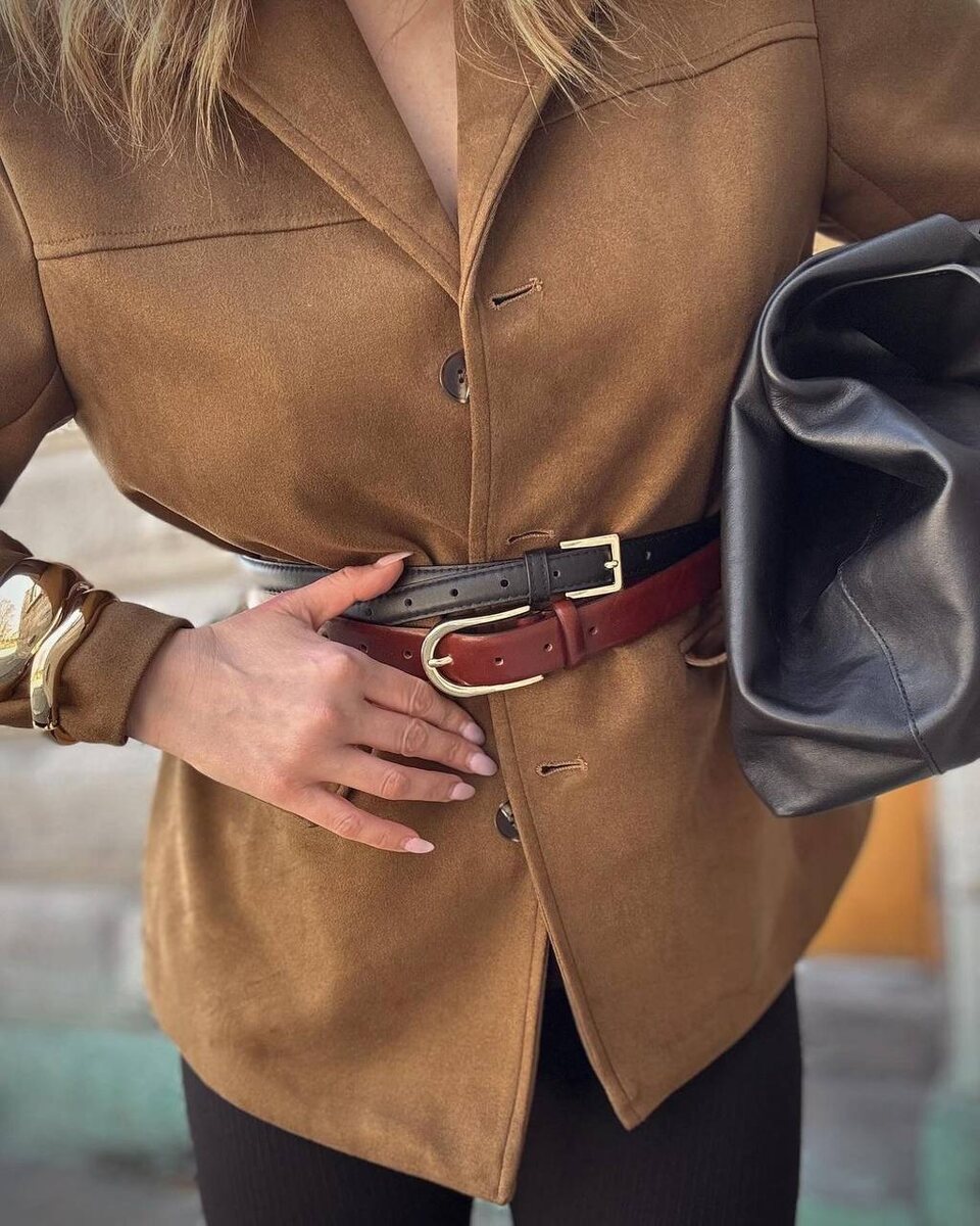 Поговорим про талию Подчеркиваем с помощью пояса Пояса снова в моде! Теперь они украшают не только брюки, но и платья, джемперы и даже верхнюю одежду. Это связано с тем, что мы ищем способы быстро и просто преобразить свой образ, не тратя много времени на сложные комбинации. Когда стоит отнестись с осторожностью: Если ваша цель – визуально уменьшить объем в области талии или живота: Неправильно подобранный пояс может сыграть злую шутку, сделав вас визуально полнее. Если вы любите оверсайз и непринужденность: Активное использование поясов может утяжелить образ и выглядеть неорганично. Если вы не готовы экспериментировать: Неудачный пояс может испортить даже самый продуманный аутфит.