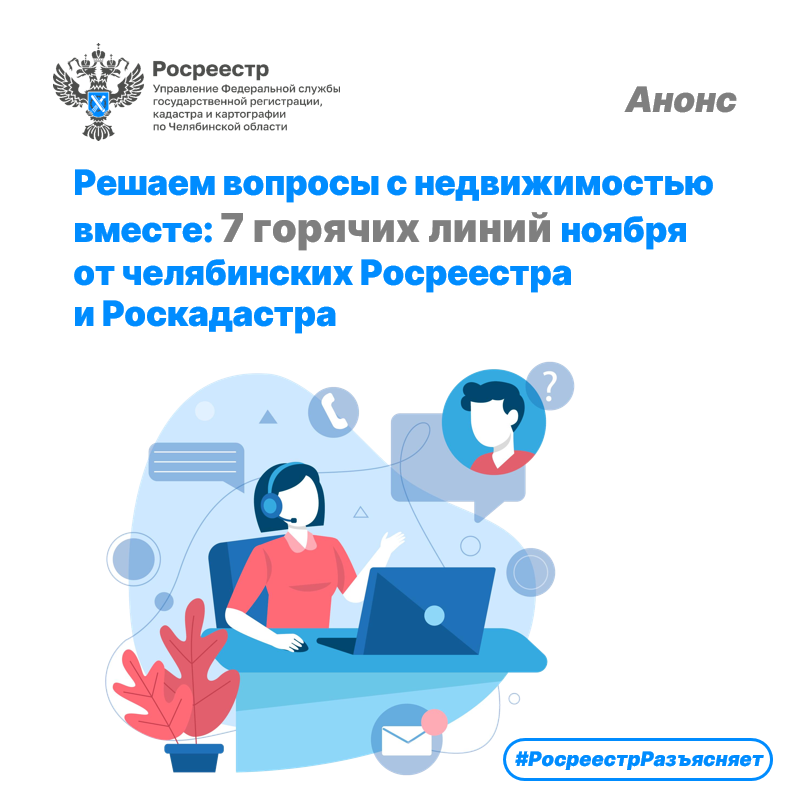 В ноябре 2025 года на горячих линиях Управления Росреестра по Челябинской области и филиала ППК «Роскадастр» южноуральцы могут задать вопросы в сфере земли и недвижимости. Всего запланировано 7 телефонных консультаций по актуальным темам, среди которых оказание государственных услуг в электронном виде, признаки неиспользования земельных участков, регистрация права собственности на машино-место и другие. Анонсируем темы горячих линий и номера телефонов, по которым можно будет обратиться в этом месяце: · 5 ноября (10.00-15.00) состоится горячая линия Общественного совета при Управлении Росреестра по Челябинской области. В ходе мероприятия граждане смогут задать интересующие вопросы о качестве оказания государственных услуг в сфере недвижимости Усцелемову Евгению Александровичу – заместителю председателя Общественного совета, председателю Комиссии по рассмотрению обращений граждан и юридических лиц. Телефон: 8 (351) 225-00-79, e-mail: 077590@mail.ru. · 6 ноября (10.00-11.00) горячая линия