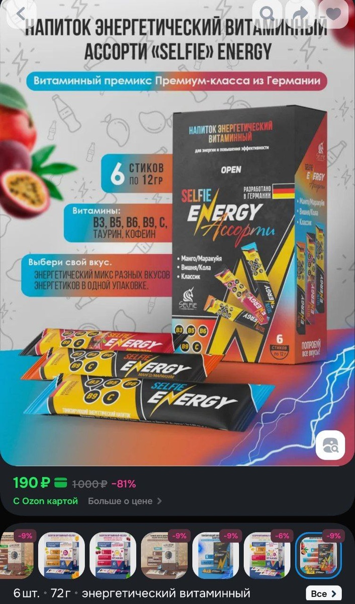 Напиток энергетический витаминный Ассорти 6 стиков за 190₽