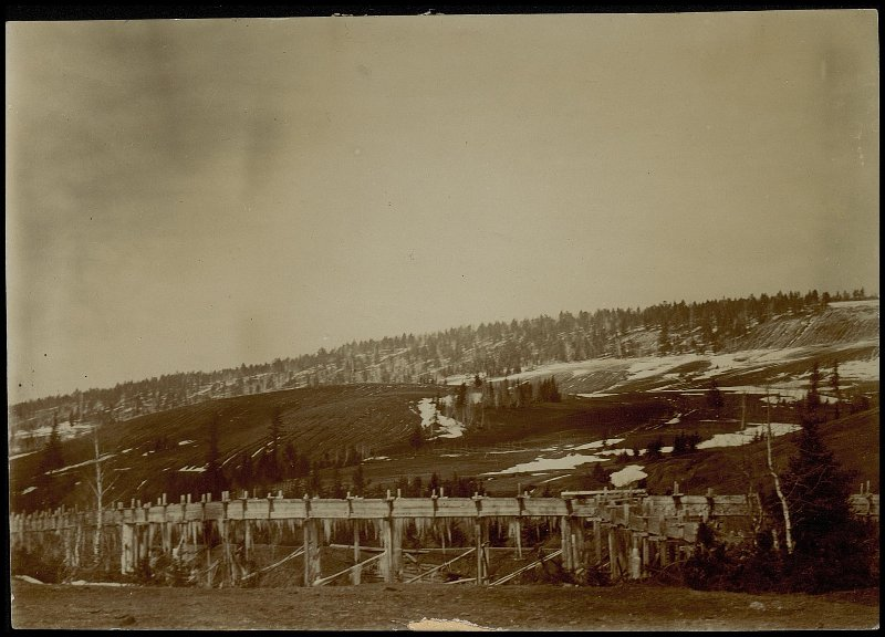 День добрый! В системах мелиорации, для орошения, самым распространенным способом подачи воды всегда был простой открытый канал. Воды нужно много или очень много и этот способ позволяет легко решать эту задачу. Что делать, если можно обойтись минимумом воды, рельеф не позволяет протянуть от водоема деривационный канал, но есть водоподъемное колесо, иначе "чигирь" или даже простой насос? Все просто, протянуть деревянный желоб установленный (или подвешенный) на деревянных столбах или треногах! Получится этакий деревянный акведук. Такие конструкции можно встретить на ряде архивных имперских и советских фотографий и Я рад ими с Вами поделиться. 1. Две фотографии деревянного акведука из коллекции Российского этнографического музея. Приблизительная датировка- конец 19го начало 20го века, местоположение неизвестно. На снимках деревянный акведук зимой, покрытый ледяными сосульками. На первом фото (нижняя правая часть) можно увидеть пример того, как выполнялось ответвление при подаче с основно