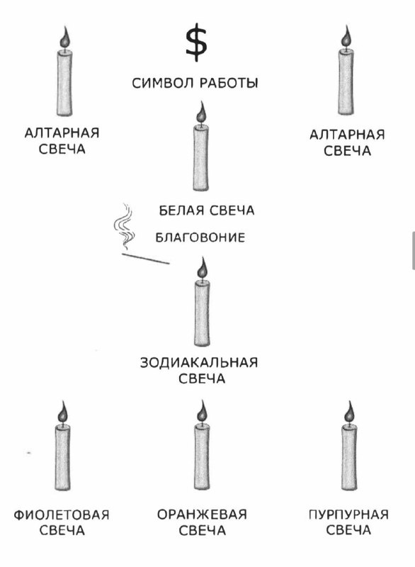 Самый подходящий день для проведения этого ритуала - понедельник, он ведь не столько «день тяжелый», сколько начало рабочей недели! Между двумя алтарными свечами поместите какой-нибудь символ желанной работы, перед ним зажгите белую свечу и благовоние с ароматом жасмина, а после этого - свечу зодиакальную. Затем зажигайте цветные свечи, расставленные в ряд перед благовонием. Первой зажечь необходимо фиолетовую свечу, огонь которой принесет решение проблемы, сдвинет дело с мертвой точки. Затем - оранжевая свеча, она придаст смелости и активности в поисках работы, подарит оптимизм и веру в себя. И, наконец, пурпурная свеча даст энергию для открытия денежных путей.
