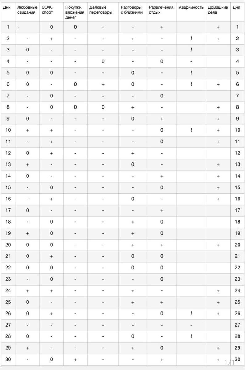 Астрологическая шпаргалка ПО ДНЯМ на НОЯБРЬ 2025 ГОДА ✨ + благоприятный день - неблагоприятный день 0 нейтральный день ! аварийный день, будьте внимательны