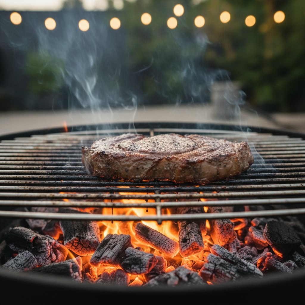Идеальный жар на мангале: не догадки, а простая система Контроль жара — это три вещи: расположение углей, высота решётки и время. Две зоны работают всегда: плотный жар для корочки и холодная зона для добора. - Делай две зоны: куча углей с одной стороны и свободное место с другой. - Прогревай решётку 10–15 минут, держи стейк на 10–15 см от углей. - Температуры ориентировочно 200–300°C для обжарки и 120–150°C для томления. - Розжиг через дымовую колонку или сухие щепки, не используй жидкие розжигатели. - Регулируй приток воздуха заслонками, чтобы жар был стабильным. Трюк: для равномерной корочки делай быстрый обжиг на плотных углях, потом добери на холодной зоне и не дави мясо вилкой — пусть сочится. 🔥 Больше трюков и схем тут: Дзен Копти тут @kopti_tyt_bot - Отвечу на любой вопрос