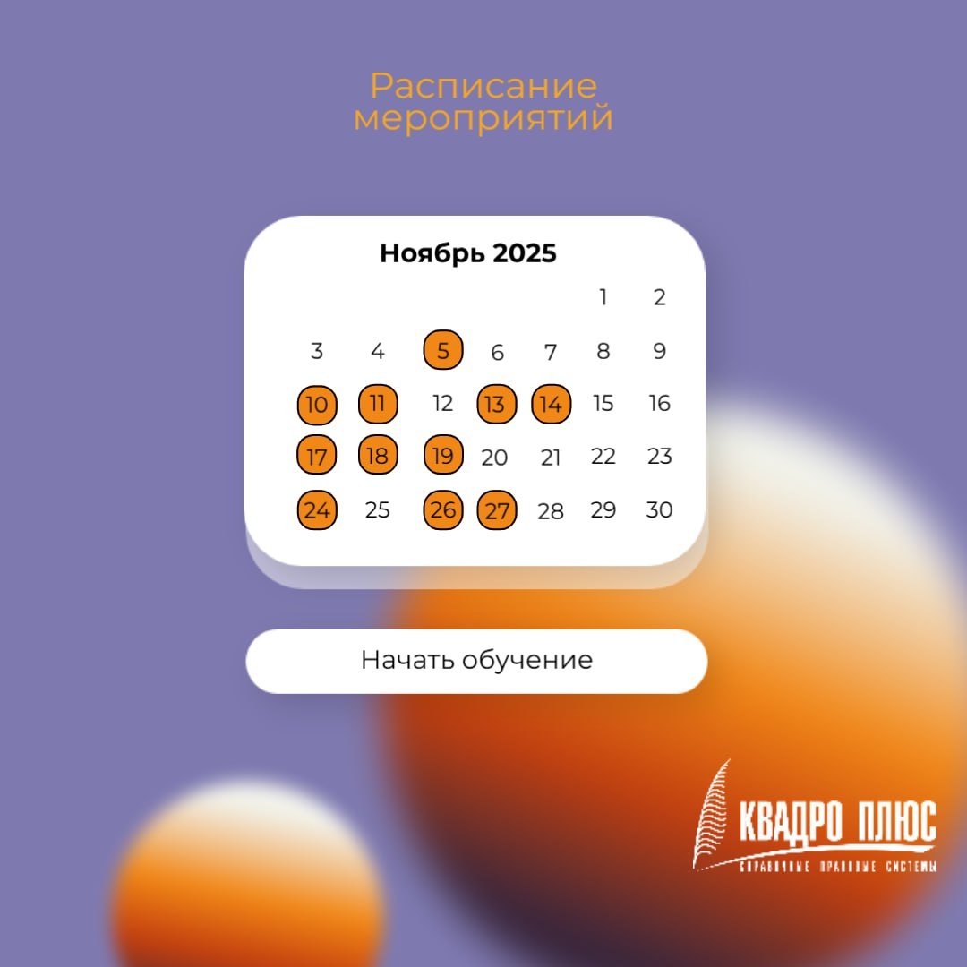 Делимся мероприятиями на ноябрь: 5️⃣🔤1️⃣1️⃣ - «Оптимизация налогообложения и налоговое планирование: как бизнесу законно минимизировать налоговую нагрузку?», эксперт Сапелкин Виталий Сергеевич (г. Новосибирск) 1️⃣0️⃣🔤1️⃣1️⃣ - «Рекламные расходы: разбираемся с налогами, минимизируем налоговые риски. Алгоритмы лучших решений c КонсультантПлюс», эксперт Колмакова Полина Владимировна, Сиушкина Инна Алексеевна (г. Москва) 1️⃣1️⃣🔤1️⃣1️⃣ - «Кадровое делопроизводство: подводим итоги года, разбираем сложные ситуации. Что ждет кадровика в 2026 году», эксперт Андреева Валентина Ивановна (г. Москва) 1️⃣3️⃣🔤1️⃣1️⃣ - «Договор аренды: бухгалтерский учет и налоги у арендодателя и арендатора, проблемы и решения», эксперт Воронцова Татьяна Александровна (г. Москва) 1️⃣4️⃣🔤1️⃣1️⃣- «Договор лизинга: бухгалтерский учет и налоги у лизингодателя и лизингополучателя, проблемы и решения», эксперт Воронцова Татьяна Александровна (г. Москва) 1️⃣4️⃣🔤1️⃣1️⃣ - «Отпуска – 2026: вовремя утверждаем график и