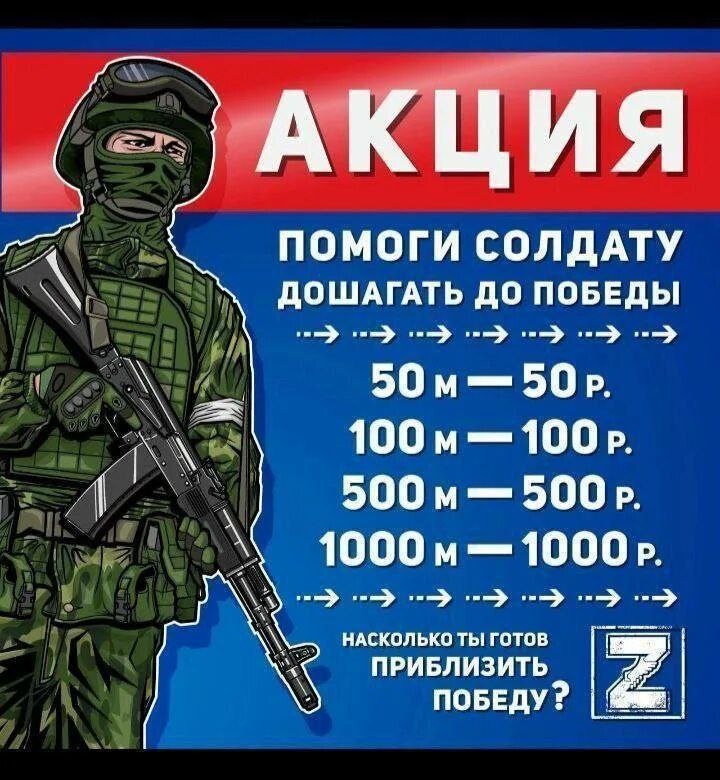 Поддержи тех, кто защищает наше будущее! 🪖 Акция «Помоги солдату дошагать до Победы» приглашает каждого сделать свой вклад в достижение общей Победы. 🤩 Вместе мы сильнее, и каждая помощь — шаг к светлому и мирному дню. ❤️ Помочь можно переводом на карту ВТБ по номеру телефона 💳💳 +79532931995 🏦 🙏🙏 💳 2200241424680084 С пометкой 🆘🆘🆘 чтобы карту не заблокировали ❤️🩹Вы также можете самостоятельно заказать медикаменты и теплые вещи на маркетплейсах по адресам: ул. Ленинградская, 20 (ВБ) или ул. Ленинградская, 28 (ОЗОН), Воронеж. Присоединяйтесь, распространите информацию и будьте частью важного дела! ❤️