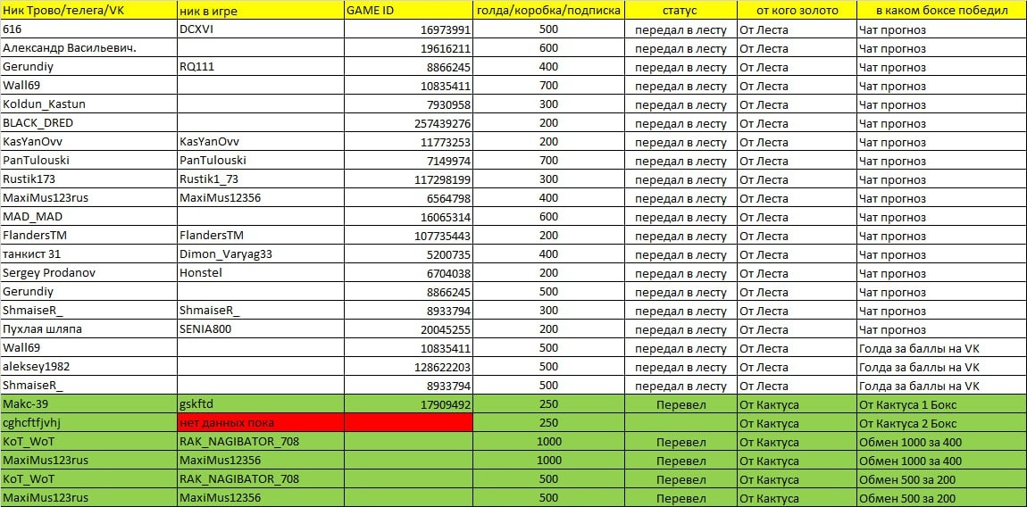 Голда оформлена! Всем кто угадывал в чат прогнозе накинул по 100 золотых