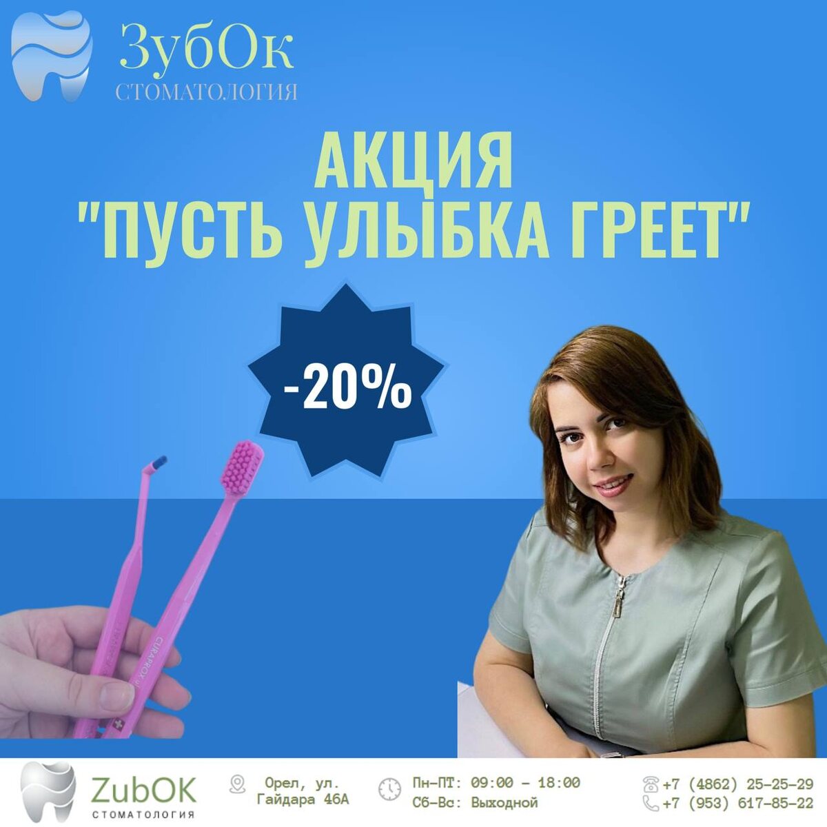 ❕Акция «Пусть улыбка греет» Когда за окном пасмурно и холодно, лучший источник тепла — это ваша улыбка. Мы поможем ей стать еще ярче, чтобы вы дарили хорошее настроение себе и близким!🩶 🔔С 1 ноября по 31 декабря скидка на гигиеническую чистку и отбеливание 20% Успейте записаться! Наши контакты: 📞телефон: 7 (953) 617-85-22 💕наш сайт: ссылка 💕VK сообщество: ссылка Адрес: г. Орел ул. Гайдара 46А Данная публикация носит информативный характер и не является рекламой. Имеются противопоказания, необходима консультация специалиста.