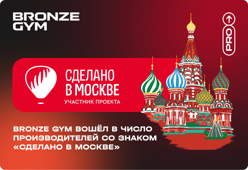Этот знак присуждается компаниям, которые не просто зарегистрированы в столице, а действительно производят продукцию здесь — в Москве. Получить его можно только после подтверждения того, что производство находится на территории города и работает в полном цикле — с собственными мощностями, штатной командой, сертифицированными процессами и документацией. По сути, «Сделано в Москве» — это городской знак доверия. Он подтверждает не только физическое наличие производства, но и качество готовой продукции, безопасность материалов, юридическую чистоту товарных знаков и лицензий, корректность инструкций к оборудованию и даже наличие отраслевых наград и признаний. Для клиентов и партнёров — это гарантия, что за брендом стоит реальный производитель, а не торговая площадка. Для государственных структур — дополнительный аргумент при выборе надёжных поставщиков. А для нас это ещё означает, что продукция Bronze Gym теперь официально размещается на городской платформе проекта. Для бренда профессио