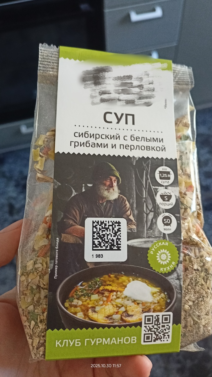 Здравствуйте дорогие подписчики и читатели канала! Всем доброго субботнего утра! Пока я три дня болела, сил готовить не было совсем. Решила я попробовать сварить суп готовый из пакетика. У меня был куплен суп сибирский с белыми грибами и перловкой. Поделюсь с вами сейчас впечатлениями. Приготовление простейшее. На 1300 мл кипящей воды - 1 пакет супа. Варить 50 минут. Из 5 звёзд я бы поставила этому супу 3,5. Из плюсов: грибы там всё же имеются, но мелко мелко нарубленные. Суп получился густой, не жидкий. Из минусов: много перловки и моркови и мало грибов. На пять порций, как написано на упаковке конечно его не хватает. От силы получилось 4 тарелки. И без сметаны или майонеза я его есть не смогла. Конечно это не сравнится с домашним супом. Но если хочется чего-то жидкого и горячего, а времени и сил нет, то можно раз в полгода такое сварить. Вот такие неоднозначные впечатления. Всем хорошего дня!