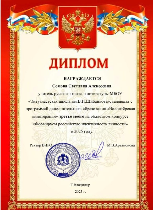 ✍️ Светлана Алексеевна Сомова, МБОУ «Энтузиастская школа им. В.И. Шибанкова» с.Энтузиаст, Юрьев-Польский р-н, Владимирская область
