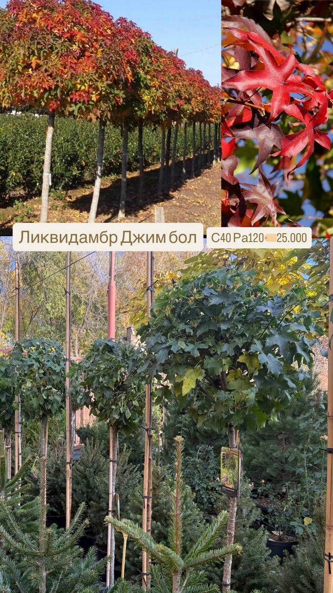 В наличии: 🌳Ликвидамбр Джим бол - С40 Ра120 🏷️25.000 🌳Ивы, ели, лиственницы, березы и много других прекрасных растений. 🌳Доверьте свой сад настоящим профессионалам и почувствуйте магию растительного мира вместе с нами! 🌳Мы работаем каждый день с 9:15 до 17:00 🌳Наш адрес: г.Ростов-на-Дону, ул. Левобережная, 19